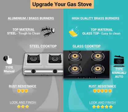 • The brass burners of the appliance ensure equal distribution of heat which aids in proper cooking processes; Since brass has a high thermal efficiency, it ensures optimum retention of heat while cooking.