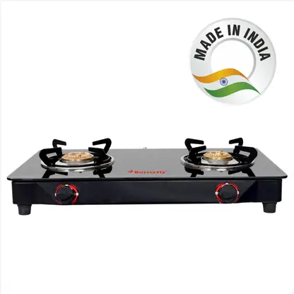 Cooking becomes easy when you have butterfly glass top gas stoves in your kitchen. It helps you to cook more than one dish at the same time in an efficient manner. Butterfly brings to you an elegant gas stove with toughened glass top with shatter-proof. It adds charm to your kitchen. 360 degree revolving nozzle and easy-to-use design makes it ideal for all types of house holds. The burner stands are designed to be spill-proof, so you don’t have to worry about your vessels toppling over. The knobs are ergonomically designed for ease-of-use. Moreover, they are engineered to avoid leakage of gas to give you safe and efficient cooking experience. The compact design of the stove saves you a lot of counter-top space. Butterfly gas stoves are very easy to clean and maintain on a regular basis.