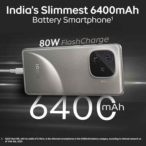 • SLIMMEST BATTERY: It’s India’s Slimmest* 6400mAh battery smartphone with 0.798cm ultra slim design, 80W fast charger & 5 years of battery health.