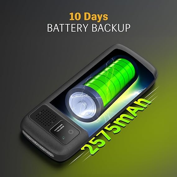 • Exceptional Build Quality with Military Grade Certification for Strong and Sturdy Body, Battery Weight: 15g, Torch, Alarm, 6 Days Battery Backup, DEDICATED SIDE SWITCH TORCH ILLUMINATE YOUR PATH WITH EASE, DUAL COLOUR STRIP TORCH WITH 3 MODE SWITCH, 2575 Mah MAHA BATTERY LONG LASTING BATTERY, VIBRATION SUPPORT TORCH BLINK FEATURE