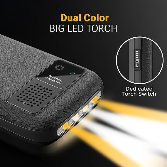 • 2.4″ Big Display, Superior Stereo Display (Wireless FM), Smart AI Battery With 10 Days Backup, Number Talker, Auto Call Recording (Folder Wise), Bluetooth Support, Contact Photo Icon, One Touch Mute, Dedicated Side Switch for Torch
