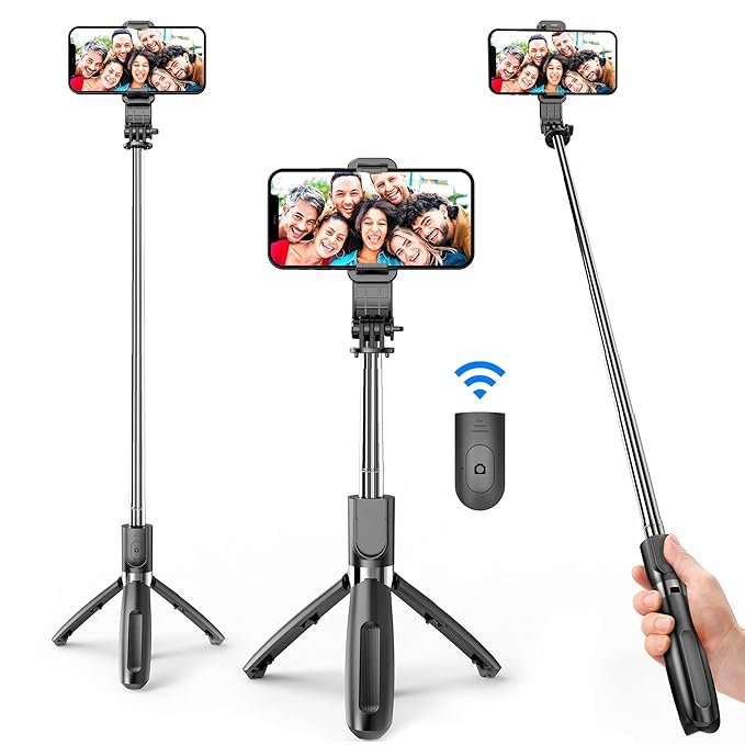 • 〠3 in 1 Multifunction Design】3 in 1 multifunction selfie stick tripod with wireless remote,it is easy to use when you take a self-photograph or group photos.Also You can separate the remote controller ,slide it out and long distance control the wireless shutter to take photos or record videos.With the desktop tripod stable mode, you can Clearly record every happy and meaningful moment in your life.