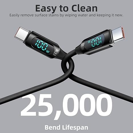 - Real-Time Power Display – toocki 100W USB C to USB C cable smart power display allows you to monitor the charging status and signify high power process in real-time, avoiding battery damage due to unstable current, Keep an eye on your charging progress like never before.
