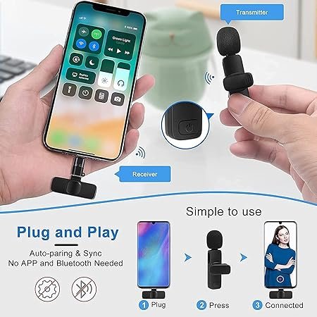 - 【Compatible with iOS and Android Devices】The upgraded wireless lavalier microphone is equipped with a Type C and a lightning connectors.The cordless microphones is compatible with iPhone/ iPad & Android smartphones, tablet with USB C port(Supports OTG function) to meet your different requirements in need.