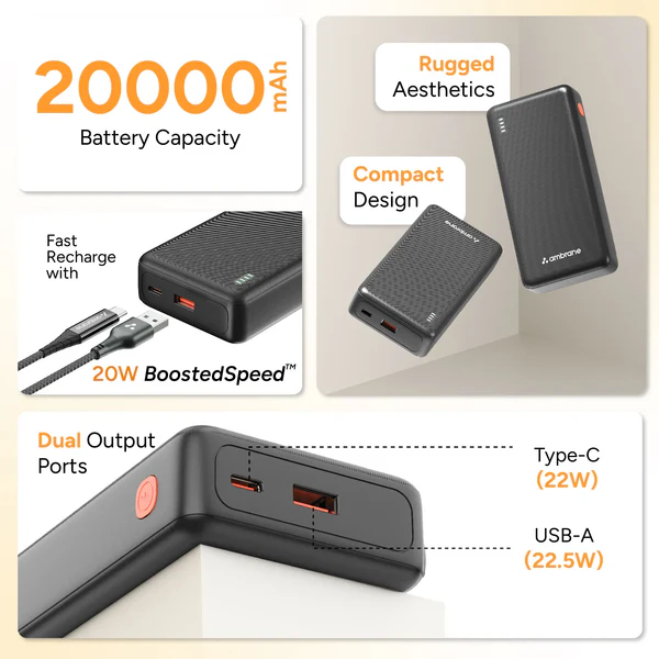 • Battery Capacity: 20,000 mAh
